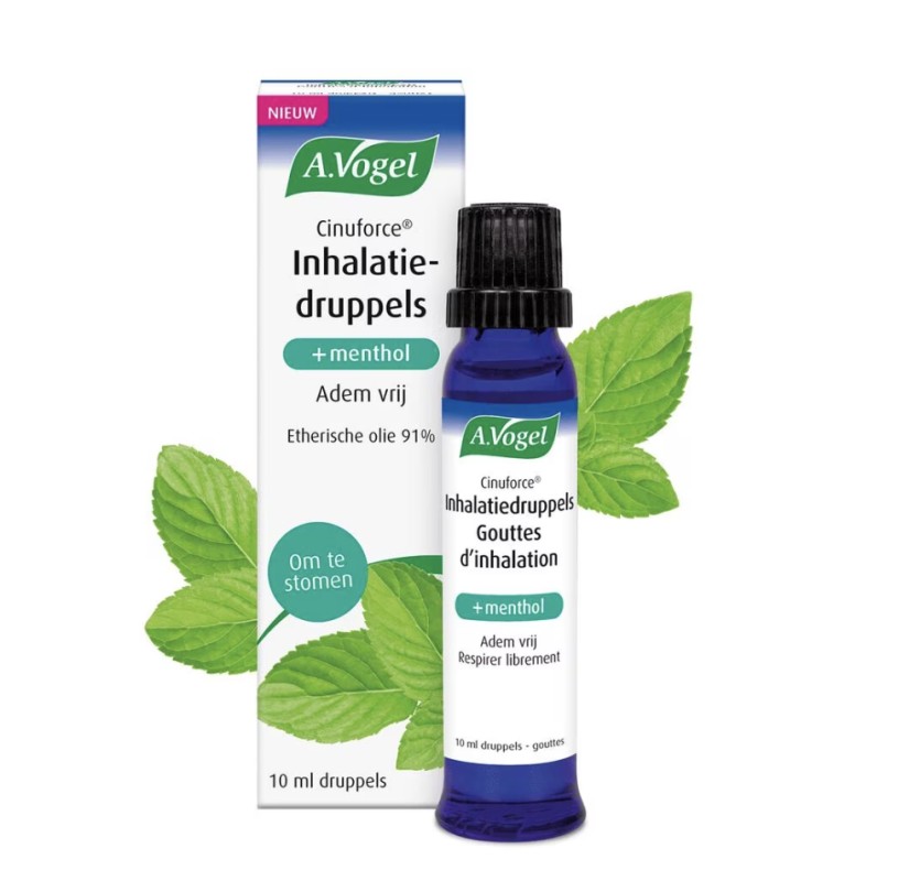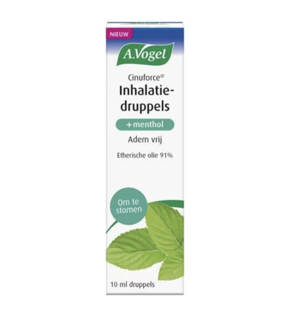 De functie van de neus is om de ingeademde lucht – elke minuut zo'n tien liter – te zuiveren en te verwarmen. Zolang de neus vrij is, gaat dit automatisch. Als je door je mond ademt, dan kun je verschijnselen als een droge mond en een 'leren' tong krijgen. A.Vogel Cinuforce Inhalatiedruppels ondersteunt de luchtwegen en helpt om vrijer te ademen door de neus. Cinuforce Inhalatiedruppels bevat onder andere Mentha piperita en Eucalyptus, die al eeuwenlang worden toegepast vanwege hun verzachtende invloed op de luchtwegen.