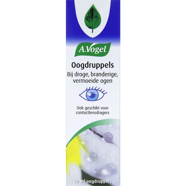 Steeds meer mensen hebben te maken met vermoeide, droge branderige ogen. Door langdurig computergebruik, tv kijken, slechte verlichting, airconditioning, verwarming, ouderdom of het dragen van contactlenzen bijvoorbeeld. Ken jedat gevoel? De A.Vogel Oogdruppels geven snelle en aanhoudende bevochtiging en verfrissing van je ogen dankzij een uniek, plantaardig ingrediënt. Eén druppel frist je ogen op en helpt je bij het behoud van voldoende traanvocht in je ogen. Je kunt naar behoefte druppelen, wat zorgt voor een frisse blik. Het handige druppel-voor-druppel doseersysteem zorgt er bovendien voor dat er steeds precies één druppel in het oog valt. A.Vogel Oogdruppels zijn ook geschikt voor dragers van harde of zachte contactlenzen. De oogdruppels van A.Vogel bevatten geen conserveringsmiddelen.