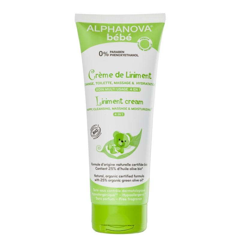 Biologische Baby Liniment Cream 4 in 1 van Alphanova is een hypo-allergene multi-functionele creme voor baby’s.