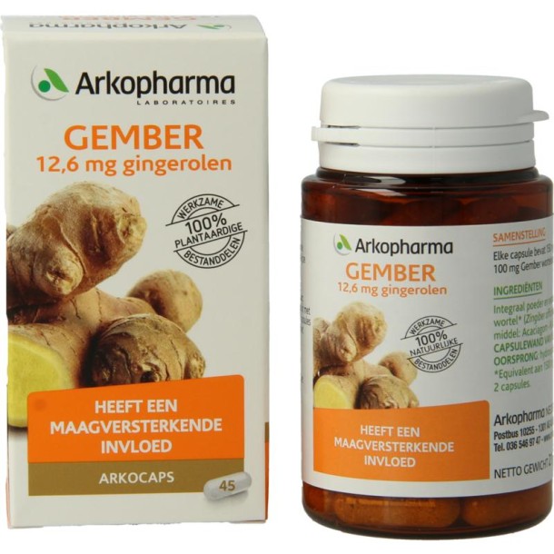 Het omhulsel van de Arkocaps Gember capsules is van plantaardige oorsprong.
