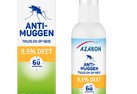 Azaron Anti-muggen 9,5% DEET Spray voor thuis en op reis biedt tot 6 uur effectieve bescherming tegen de meest voorkomende muggensoorten in Nederland. Voor sommige tropische soorten kan de werkingsduur korter zijn, gemiddeld 2 uur bescherming tegen de gelekoortsmug of denguemug (welke o.a. het Zikavirus kunnen overdragen) en 5 uur tegen de malariamug. Voor de hele familie. Vanaf 2 jaar.