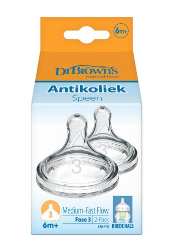Brede tepelvormige speen waardoor baby's snel wennen aan het drinken uit een fles. De speciale zachte afwerking voelt aan als de moederborst. Hierdoor zijn borst- en flesvoeding goed te combineren.