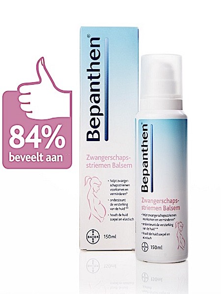93 zwangere vrouwen testten Bepanthen Zwangerschapsstriemen Balsem voor Wij-testpanel (mei 2016). Hun conclusie: een fijne balsem die snel in trekt, niet plakt en zorgt voor een heerlijk, zachte en soepele huid! "Aanrader en trekt snel in!"