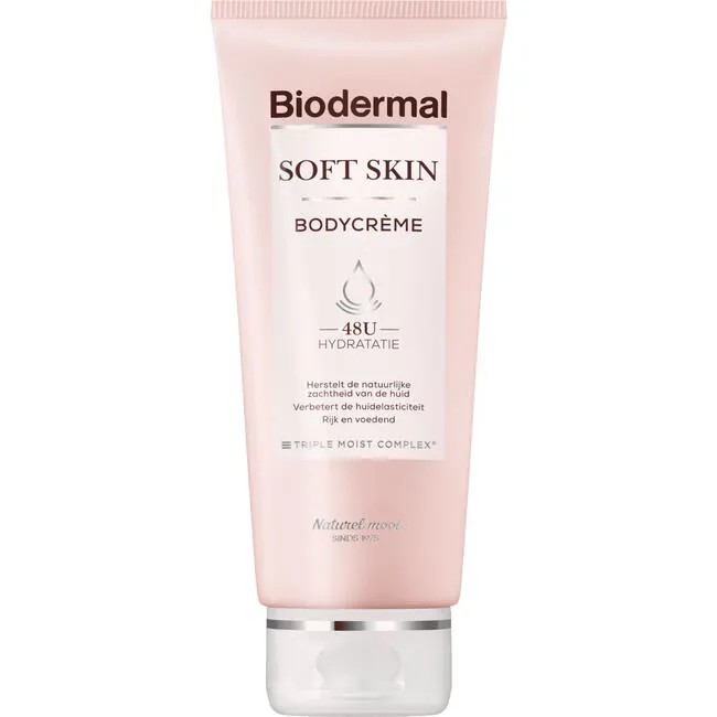 Biodermal Soft Skin Bodycrème is een rijke, voedende crème met heerlijk zachte geur, speciaal ontwikkeld voor de normale tot soms wat droge huid. De formule is verrijkt met het Triple Moist Complex, een combinatie van effectieve, hydraterende ingrediënten voor directe, intensieve en langdurige hydratatie tot wel 48 uur lang. Zo behoudt en herstelt de crème de natuurlijke zachtheid van de huid en wordt de huidelasticiteit verbeterd. Met als resultaat een voelbaar zachte, soepele en gladde huid. Dermatologisch getest Werking