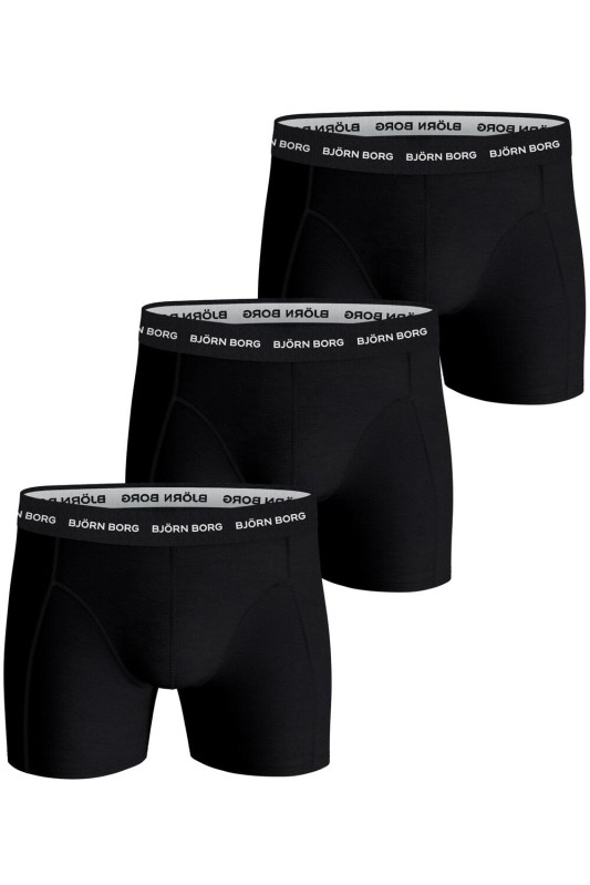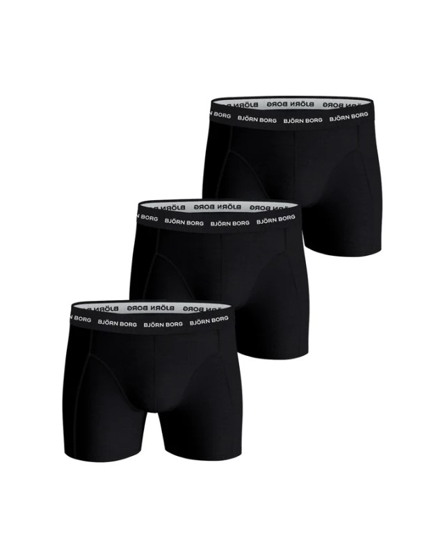 De Bjorn Borg Basic Boxershorts Heren hebben de volgende eigenschappen: De Bjorn Borg Basic Boxershorts voor heren dragen zeer comfortabel doordat ze gemaakt zijn van katoen met elastaan. Deze boxers zitten in een pakket van drie shorts en zijn voorzien van een tailleband met Bjorn Borg logo's daarin.
