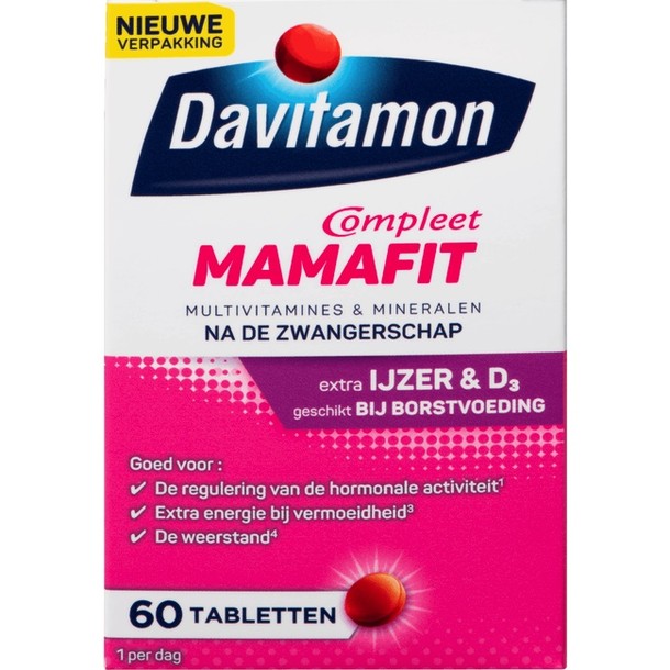 Davitamon Mamafit is speciaal ontwikkeld voor extra ondersteuning na de zwangerschap. Want niet alleen heb je veel van je lichaam gevraagd tijdens de zwangerschapsperiode en de bevalling ook nu je kindje er is wordt er veel van je lichaam gevraagd. Een drukke periode nu je kindje er is met veel nieuwe indrukken. Om je hierbij te ondersteunen kun je Mamafit van Davitamon slikken. De vitamines hierin stimuleren je weerstand en bevorderen je energie niveau. Zodat je periode als mama met frisse moed kunt beginnen en bovenal kunt volhouden