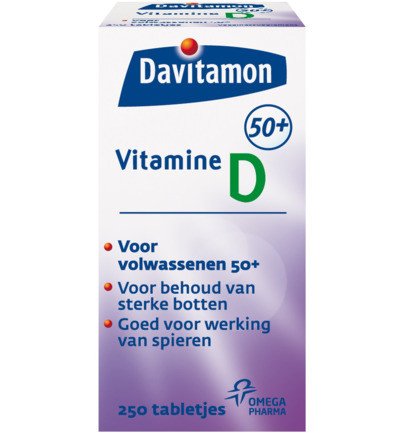 Davitamon Vitamine D 50+ verhoogt de opname van calcium in de botten en zorgt daarmee voor het behoud van sterke botten.
