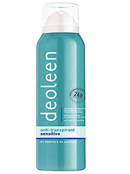 Voorkom overmatige transpiratie met Deoleen Sensitive Anti-Transpirant Spray. De spray beschermt de huid 24 uur lang tegen transpiratie en onaangename geurtjes. Deoleen Sensitive Anti-Transpirant Spray aanbevolen door dermatologen en bevat geen parfum en alcohol. De spray is daardoor geschikt voor de gevoelige huid.