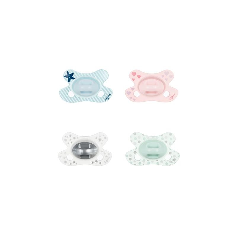 De dental fopspeen stimuleert de ontwikkeling van de kaak- en tongspieren. Het bolle gedeelte van de speen rust tegen het gehemelte en de tong drukt tegen de platte kant