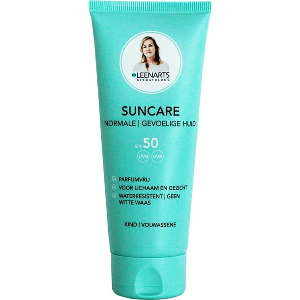 Drs Leenarts Suncare SPF 50 is een parfumvrije zonnebrand voor de gevoelige huid. De ingrediënten van de Suncare SPF 50 zijn zorgvuldig gekozen; de kans op een allergische reactie is heel erg klein. Deze zonnebrand zonder parfum laat geen witte waas achter en is waterresistent.Drs Leenarts Suncare SPF 50 bevat organische zonnefilters. Deze trekken in de bovenste laag van je huid, waar ze de UVA- en UVB-straling absorberen.