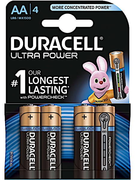 Duracell Ultra Power AA batterijen zijn alkaline batterijen die ideaal zijn voor het aandrijven van al uw apparaten. Ze zijn onze duurzaamste batterijen en bevatten meer vermogen dan andere AA batterijen, waardoor ze een superieure prestatie bieden voor al uw wensen. Daarnaast maakt de Powercheck™ technologie het gemakkelijk om te controleren hoeveel energie er over is in iedere batterij: u drukt eenvoudigweg aan weerszijden op de witte stippen en ziet de overgebleven hoeveelheid energie in de energiemeter. Deze AA batterijen zijn de beste keuze wanneer u op zoek bent naar duurzame energie in al uw regelmatig gebruikte apparaten, zoals digitale camera's, draagbare spelcomputers, scheerapparaten, afstandsbedieningen, cd-spelers, gemotoriseerd speelgoed, zaklampen, tandenborstels, etc. Duracell Ultra Power AA alkaline batterijen zijn onze duurzaamste batterijen met Powercheck™ (gemiddeld genomen over verschillende apparaten) en zijn tevens verkrijgbaar in AAA, C, D en 9V.
