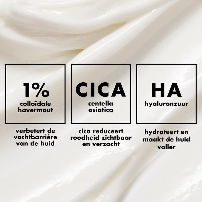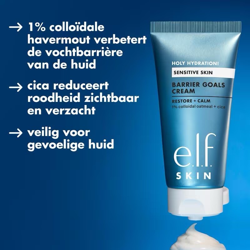 "Een rijke en comfortabele crème voor de huidbarrière met 1% colloïdale havermout en cica om de huid te kalmeren, te voeden, te hydrateren en de vochtbarrière van de huid te helpen herstellen. ● Rjke crème voor de huidbarrière die helpt de vochtbarrière van je huid te herstellen en te versterken, voor een gehydrateerde en gekalmeerde huid ● Bevat 1% colloïdale havermout om de huid te kalmeren, cica om roodheid zichtbaar te verminderen en hyaluronzuur voor langdurige hydratatie ● Snel absorberende huidherstellende crème die niet vettig aanvoelt met een romige, luchtige textuur ● Veilig voor de gevoelige huid en huid met eczeem ● Niet-comedogeen ● 100% vegan, e.l.f. heeft twee cruelty-free certificaten van Leaping Bunny en PETA"