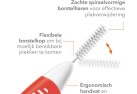 • Spiraalvormige zachte borstelharen reinigen zachtjes tussen de tanden en verwijderen plak effectief
