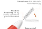 - Flexibele gecoate borstelkop voor moeilijk bereikbare gebieden achter in de mond