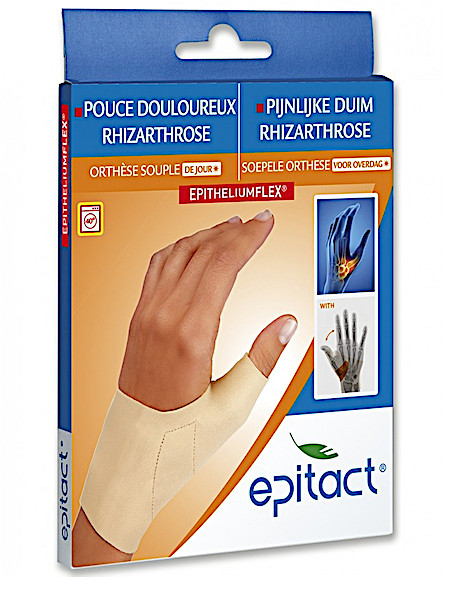 Het overdag dragen van de Soepele Proprioceptieve Orthese Duim EPITACT® helpt gewrichtspijn door artrose aan de basis van de duim (rhizarthrose) te verlichten. Ze beperkt traumatiserende microbewegingen (verplaatsen van de handen in de ruimte tijdens het wandelen, praten, …), houdt de duim in rusthouding en bewaart de lokale warmte ter hoogte van het gewricht. Deze soepele en dunne orthese zorgt ervoor dat u de volledige functie van uw hand kunt behouden: u kunt met de wagen rijden, schrijven, uw telefoon gebruiken, … en uw horloge of uw juwelen dragen!