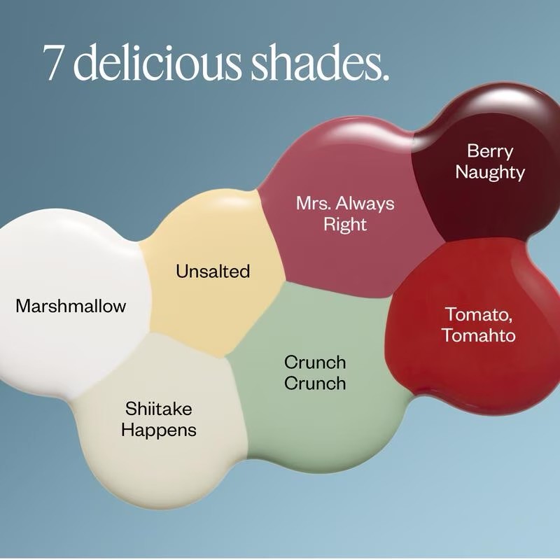 Laat je verleiden door de essie Gourmet Grocery collectie: een uitnodiging voor een feest van onweerstaanbare kleuren! Deze 7 food-inspired tinten, van tomatenrood tot botergeel, zoals Marshmallow, Shiitake Happens en Berry Naughty, vervullen al je nagellakwensen zonder dat je een UV-lamp nodig hebt. Elke nagellak biedt een perfecte dekking dankzij de salonkwaliteit formule. Aanbrengen gaat supermakkelijk door de exclusieve kwast die soepel glijdt en zorgt voor een strak en egaal resultaat. Voor een stralende, langdurige manicure gebruik je een base coat om je nagels te beschermen en een top coat voor extra glans en houdbaarheid, allemaal zonder UV-uitharding.