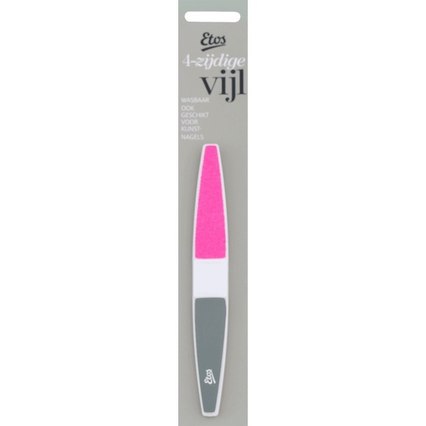 Creëer prachtig gevijlde nagels met de Etos 4 Zijdige Vijl. Je nagels kun je mooi vormgeven met de grove zijde en mediumzijde van de vijl. De vijl is ook geschikt voor kunstnagels. Met de fijne en extra fijne zijde kun je kleine haakjes wegvijlen en je nagels netjes bijvijlen. Gebruik de Etos 4 Zijdige Vijl voor een mooie vorm en glans van je nagels.