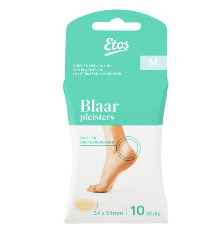 Etos blaarpleisters verminderen de pijnlijke druk op een blaar en dragen zeer comfortabel. De gel in de pleister neemt wondvocht op. Hierdoor ontstaat een zacht gelkussentje dat de pijn verlicht.
