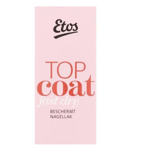 De Etos Top coat beschermt de nagellak en geeft een glanzende en harde beschermlaag. • Voor extra glans & Bescherming • Fast dry