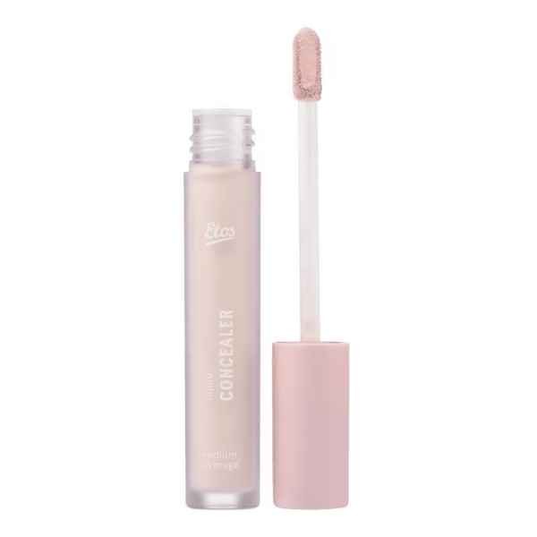 Verhelder je huid met de Etos Liquid Concealer 01 Ivory. Deze lichte concealer is perfect voor het camoufleren van donkere kringen en kleine oneffenheden, en biedt een natuurlijke, stralende uitstraling. Met 99% natuurlijke ingrediënten, waaronder bisabolol, glycerine en vitamine E, hydrateert en verzorgt deze formule je huid.