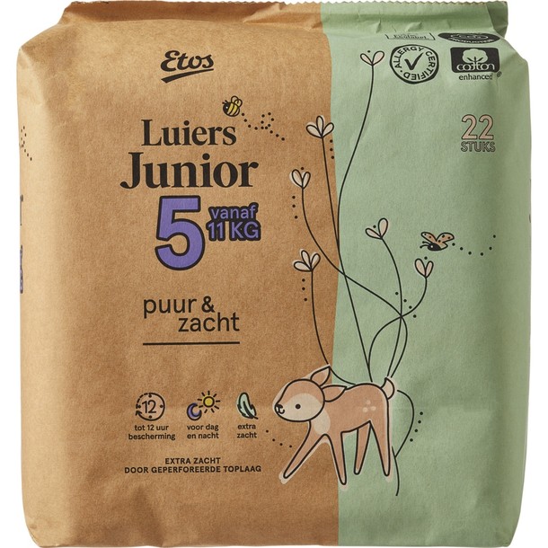 Etos Luiers Junior Puur & Zacht Mt 5 ( 22 stuks )