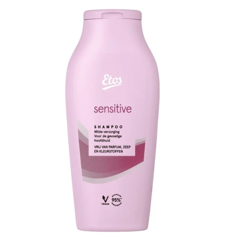 Etos Sensitive shampoo is speciaal ontwikkeld voor de gevoelige (hoofd)huid. De milde formule is vrij van parfum, zeep en kleurstoffen