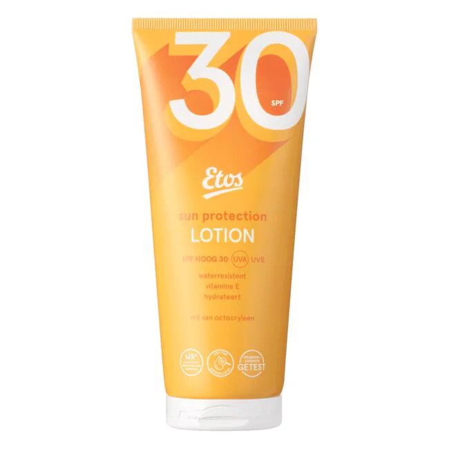 Etos Sun Protection lotion SPF30 biedt UVA- en UVB-bescherming en heeft een hydraterende werking op de huid.