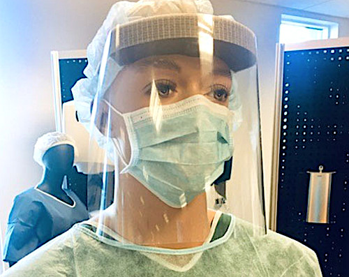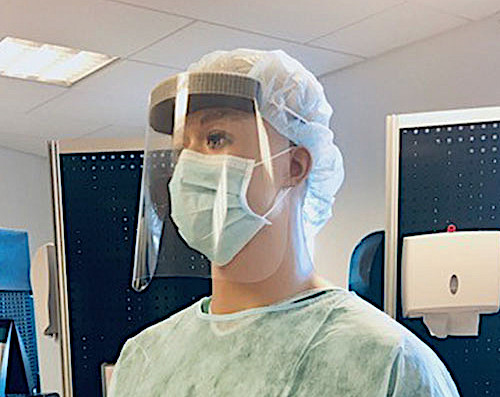 Een gezichtsbeschermer minimaliseert de kans op overdracht van infectieziekten, Kan gedragen worden ter vervanging van een beschermbril.