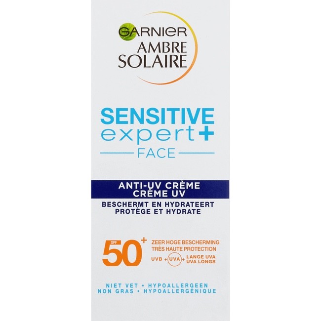De Garnier Ambre Solaire Sensitive Expert+ Gezichtscrème SPF 50 is ontwikkeld voor bescherming van de gevoelige huid. De crème beschermt en hydrateert zonder de huid glanzend of vet te maken. Het product laat geen witte strepen achter.