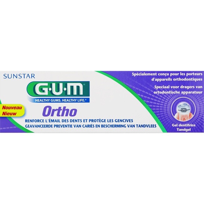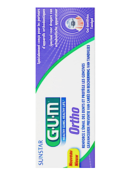 De GUM Ortho Tandpasta is ontwikkeld voor professionele tandplakcontrole en helpt de gezondheid van gevoelig parodontaal weefsel te verbeteren. De tandpasta bevat fluoride en is ideaal om de eerste tekenen van gevoelig tandvlees te behandelen. Dit product is ook aan te raden bij tandplakcontrole rondom orthodontische apparatuur, bij implantaten, kunstgebitten of andere prothetische toepassingen.