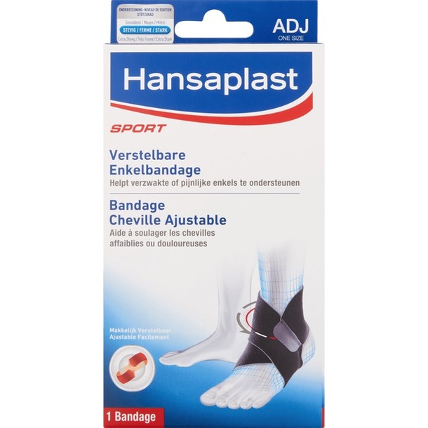 De Hansaplast Sport Verstelbare Enkelbandage is ontworpen om stevigheid en steun te bieden aan stijve, zwakke of geblesseerde enkels. De bandage helpt ook verdere blessures te voorkomen. Voor de linker- en rechterenkel. De pasvorm kan worden aangepast met de verstelbare band. De bandage is gemaakt van duurzaam materiaal voor ondersteuning, warmte en comfort. Voor dagelijks gebruik, bij hobby en sport.