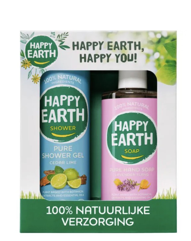 Happy Earth Giftset Cedar Lime Douchegel en Lavender Ylang Handzeep