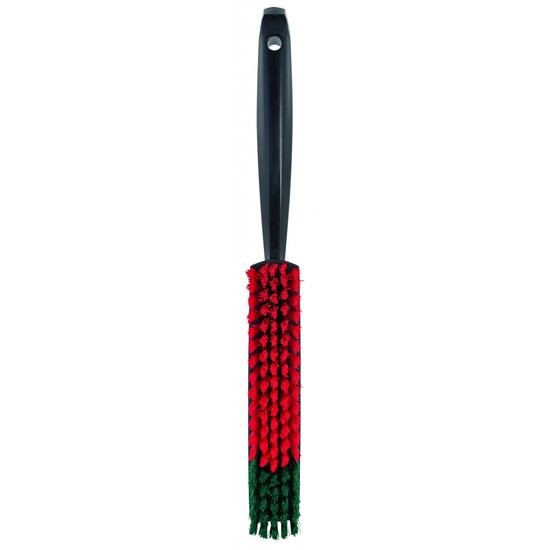 Harde handveger voor het eenvoudig verwijderen van vuil en kruimels uit bekleding en tapijt. Dankzij het slanke ontwerp is deze borstel ook zeer geschikt voor het verwijderen van vuil in kleine hoekjes van de stoffering, zoals bij stoelgeleiders en onder en tussen stoelen. De steel is uitgevoerd in zwart geschuimd polypropyleen. De harde rood/groene polyester vezels zijn bestand tegen temperaturen van maximaal 100°C. Uitgevoerd in het nieuwe EDGE ontwerp.