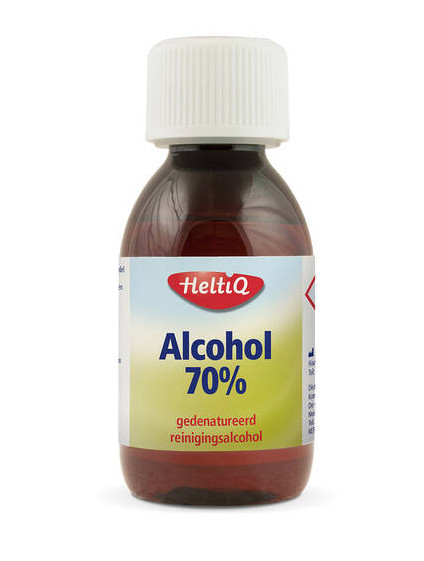 HeltiQ Alcohol 70% is een gedenatureerde alcohol die u samen met een steriel HeltiQ Gaaskompres gebruikt om instrumenten zoals een thermometer of een pincet te reinigen. Wanneer u geen gaasjes voor handen heeft kunt u de alcohol ook samen met een pluk HeltiQ Verbandwatten gebruiken om de instrumenten mee te reinigen. De alcohol is ook geschikt om parfum-, lijm- of viltstiftvlekken mee te verwijderen. HeltiQ Alcohol 70% is ongeschikt voor consumptie.