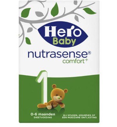 Hero Baby Nutrasense® Comfort+ 1 is een dieetvoeding voor medisch gebruik bij spugen, krampjes of moeizame ontlasting. Geschikt voor baby's van 0 tot 6 maanden, indien je geen borstvoeding (meer) geeft of borstvoeding met flesvoeding gaat combineren.