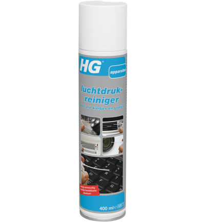 HG luchtdrukreiniger voor alle kiertjes en gaatjes verwijdert stof en andere losse vervuiling uit alle moeilijk bereikbare kiertjes en gaatjes waar een normale stofdoek of stofzuiger niet bij kan komen of geen effect heeft of schade zouden kunnen veroorzaken zoals bij toetsenborden, roosters en andere (ventilatie)openingen van computers en televisies, luchtroosters in auto’s of bijvoorbeeld de scheerkop(pen) van het scheerapparaat. Daarnaast is dit product ook uitstekend geschikt voor het veilig reinigen van oppervlakken die in principe niet aangeraakt mogen worden zoals lenzen, computer printplaatjes e.d.