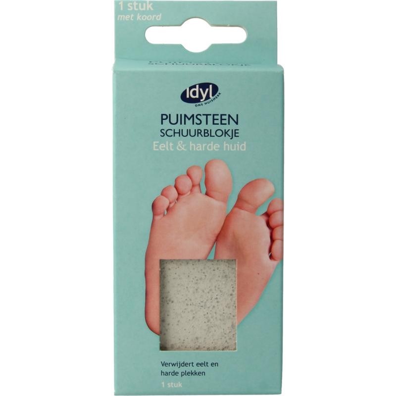Na een voetenbad het Idyl Puimsteen Schuurblokje op de droge huid toepassen.