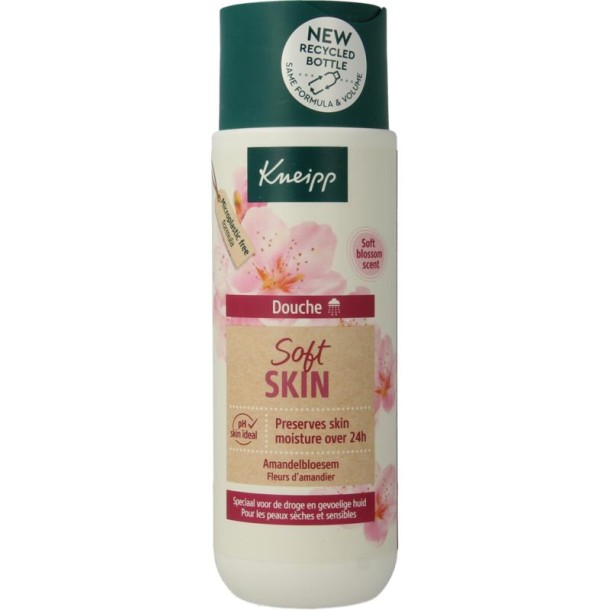Kneipp® douche Soft Skin - Amandelbloesem is een mild reinigende en verzorgende douchegel die speciaal geschikt is voor de gevoelige huid. Door de voedende amandelolie en rijke sheabutter blijft het vochtgehalte van de huid op peil* en wordt uitdroging van de huid voorkomen. Ook biedt deze zeepvrije douche extra ondersteuning voor het behoud van de natuurlijke huidbarrière. Geniet van de heerlijke geur en een zachte soepele huid na het douchen. **Bevestigd door wetenschappelijk onderzoek.