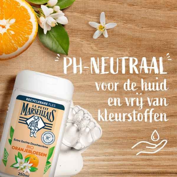 • Le Petit Marseillais extra zachte douchecrème heeft een voedende werking op de huid en hydrateert optimaal.