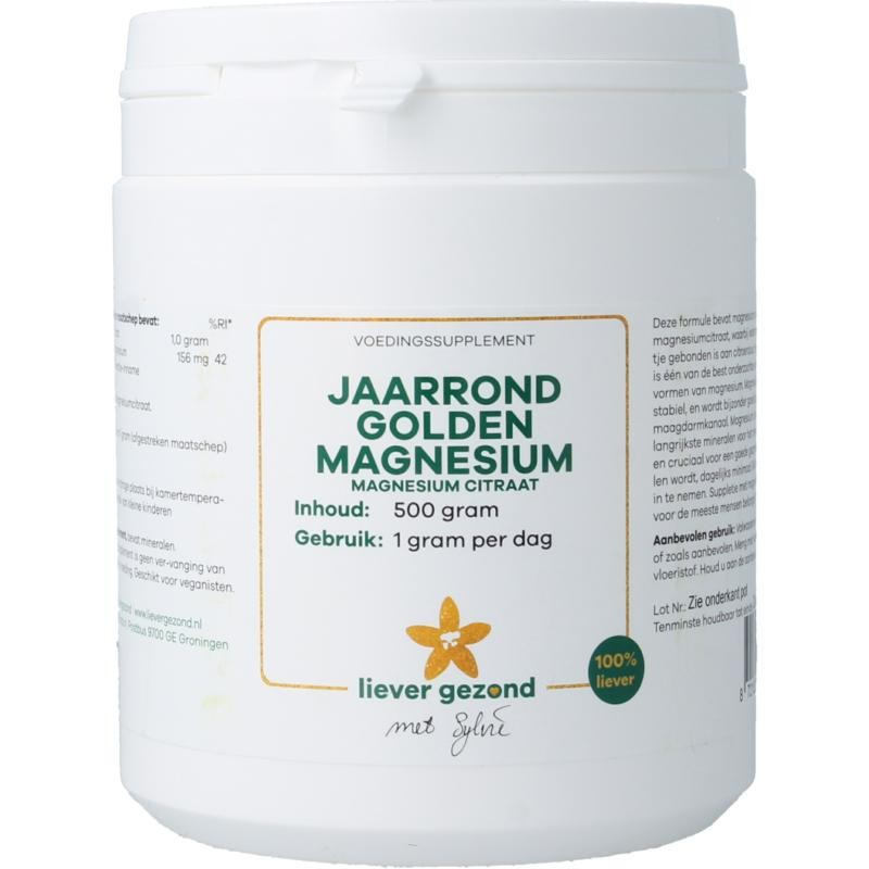 Liever Gezond Golden magnesium poeder jaarrond (500 Gram)