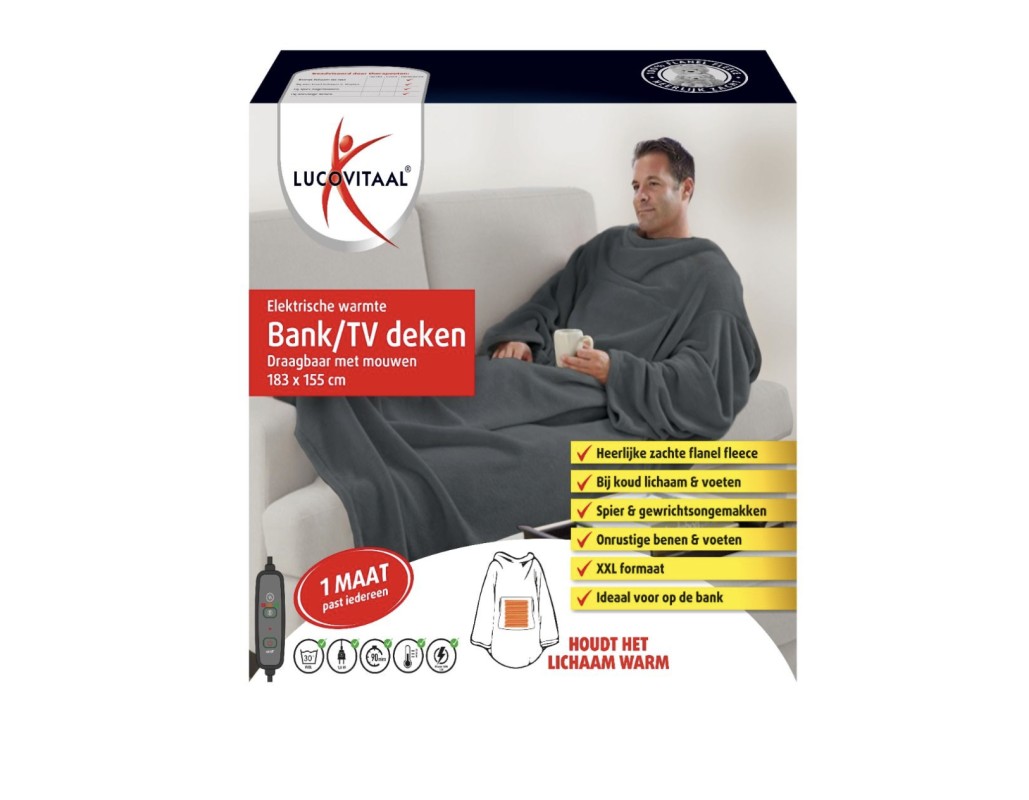 Ideaal op bank of bed: Met de Lucovitaal electrische Bank /TV warmte deken ‘met mouwen ‘ kunt u heerlijk genieten van het warmingseffect. Op een regenachtige of koude avonden lees je een spannend boek of kijk je je favoriete serie. De stof bestaat uit 100% flanel fleece en is ideaal bij een koud lichaam of voeten. Maar ook voor belastende spieren en gewrichten heeft het een goed effect. Deze deken houdt u warm en uw spieren en gewrichten soepel, zelfs op de koudste dagen!