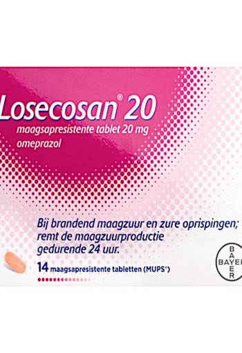 Losecosan 20 mg bij brandend maagzuur en zure oprispingen. Remt de maagzuurproductie gedurende 24 uur.