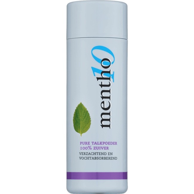 Gebruik deze pure en zuivere Mentho-10 Pure Talkpoeder om huidirritatie te voorkomen. De talkpoeder is vochtabsorberend en zeer geschikt als babypoeder. Het product werkt verzachtend en heeft geen extra toevoegingen.