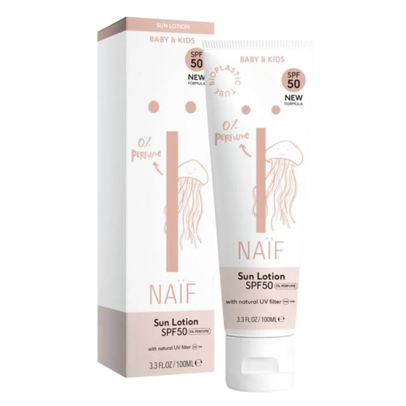 We adviseren baby’s met name het eerste jaar zoveel mogelijk uit de zon te houden. Mocht het toch voorkomen, is Naïf’s Zonnebrandcrème ook veilig te gebruiken voor de gevoelige huid van pasgeboren baby’s.