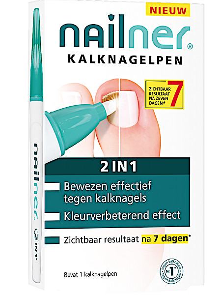 1. Effectieve behandeling van kalknagels Breng Nailner Kalknagelpen* vier weken lang twee keer per dag aan, bijvoorbeeld 's ochtends en 's avonds. Daarna kun je de dosering terugbrengen tot een keer per dag gedurende de gehele aangroeiperiode van de nagel (zes tot acht maanden voor vingernagels, acht tot twaalf maanden voor teennagels).