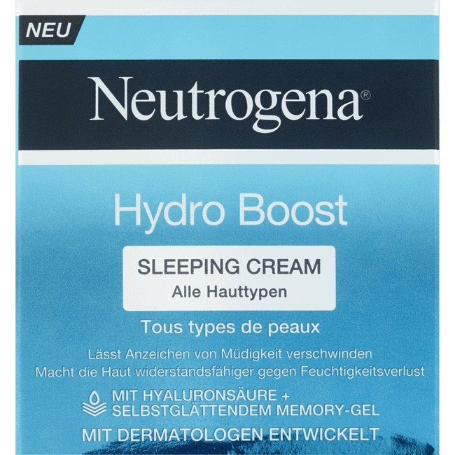 Neutrogena Hydro Boost Sleeping Cream maakt je huid beter bestand tegen vochtverlies tijdens de nacht en is geschikt voor alle huidtypen. De crème bevat een combinatie van hyaluronzuur en voedende ingrediënten. Beschermt het vochtgehalte en ondersteunt het herstellend vermogen van de huid. Voorziet de huidcellen de hele nacht van vocht om tekenen van vermoeidheid te vervagen. Niet plakkerig, de gelcrème textuur trekt snel in de huid Rust voor jou. Rust voor je huid.