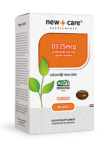 New Care D3 25mcg in kokosolie voor een goede opname Inhoud 100 capsules