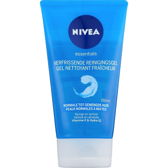 NIVEA Essentials Verfrissende Reinigingsgel is speciaal ontwikkeld voor de normale tot gemengde huid. De formule is verrijkt met Vitamine E en Hydra IQ. De gel reinigt grondig zonder de huideigen vochtbalans te verstoren en verkwikt de huid dankzij de verfrissende formule. Het resultaat is een frisse, gezond en mooi uitziende huid. NIVEA Essentials Verfrissende Reinigingsgel is huidvriendelijk en dermatologisch goedgekeurd.