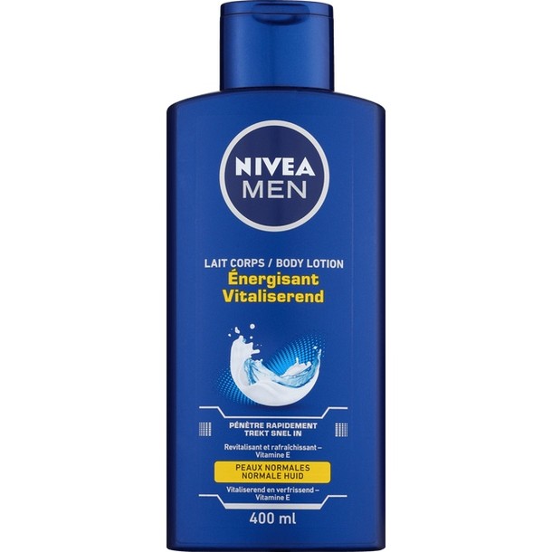 NIVEA MEN Vitaliserende Body Lotion is ontwikkeld voor mannen en geeft een explosie van frisheid op je huid. De niet-plakkerige formule, verrijkt met Vitamine E, vitaliseert je huid en geeft deze extra energie. NIVEA MEN Vitaliserende Body Lotion trekt snel in en hydrateert je huid intensief de hele dag door!