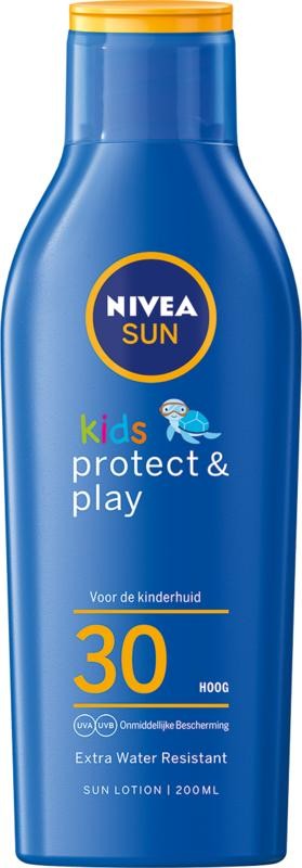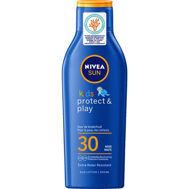 Langdurige hydratatie, zeer effectieve en onmiddellijke UVA/UVB bescherming en vermindert de intensiteit van door UV filters veroorzaakte vlekken na het wassen, vergeleken met voorgaande Nivea formules Kids Hydraterende Zonnemelk